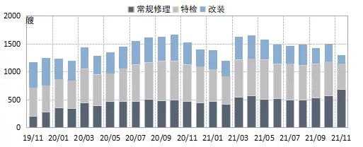 A :國際修船市場整體較為平穩(wěn)。隨著全球疫情得到一定程度的控制,航運(yùn)市場一路高歌,全球修船市場整體延續(xù)平穩(wěn)態(tài)勢。根據(jù)克拉克森數(shù)據(jù),1-11月,全球共修理16333艘,同比增加1.4%。常規(guī)修理和特檢塢修時(shí)間較短,對(duì)船東排期影響較小,訂單量均有所增長,常規(guī)修理和特檢訂單分別為5714艘和6831艘,同比分別增長15.4%和1.5%。航運(yùn)市場火爆,船隊(duì)運(yùn)力緊張,運(yùn)價(jià)持續(xù)高位,船東主動(dòng)改裝意愿不強(qiáng),加上脫硫塔訂單量銳減等因素,改裝訂單有所減少,共改裝3788艘,同比減少14.5%。壓載水處理系統(tǒng)改裝量保持穩(wěn)定,共加裝3379艘,占改裝總量的89.2%,同比增加4.7%。脫硫塔加裝熱潮明顯消退,僅加裝237艘,占改裝總量的6.3%,同比大幅下降76.6%