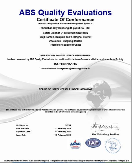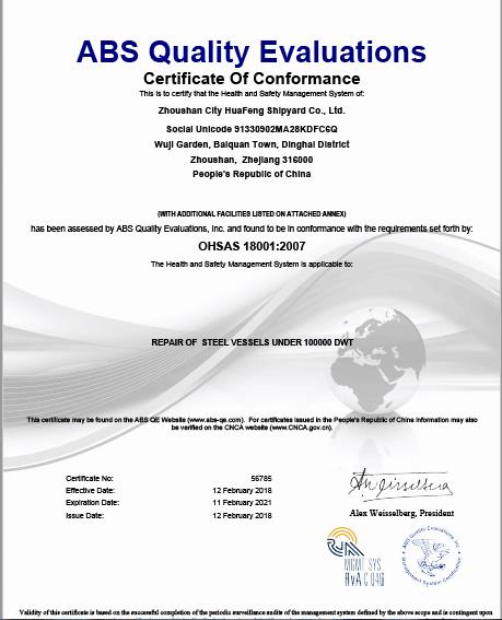 舟山市華豐船舶修造有限公司 我廠通過ABS體系認證