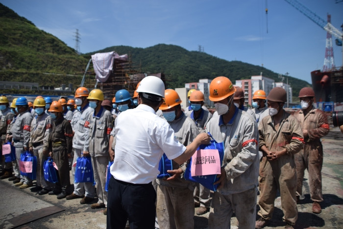 發(fā)布時(shí)間:2022-07-20 點(diǎn)擊量:22707月20日上午10時(shí)許,定海區(qū)委書記侯富光、區(qū)委辦、區(qū)總工會(huì)主要負(fù)責(zé)人等一行來到華豐船廠生產(chǎn)現(xiàn)場慰問高溫下生產(chǎn)勞作的一線員工。公司董事長鄔志祥、副總經(jīng)理周炳科等陪同慰問。