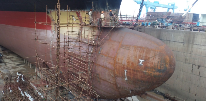 三船的同時(shí)段球鼻艏改造進(jìn)一步提升了公司的綜合修船能力。