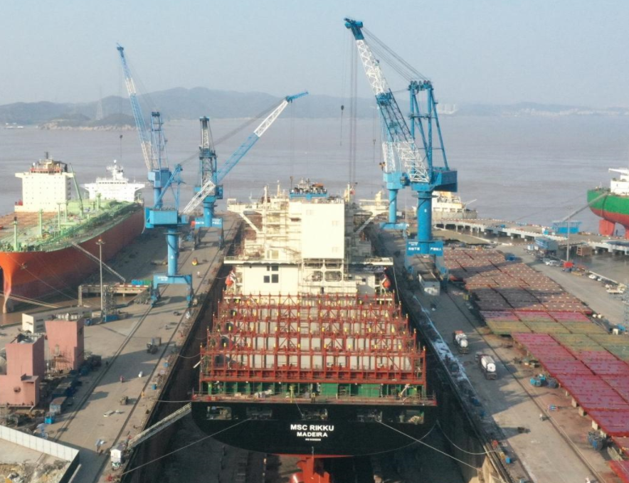 發(fā)布時(shí)間:2023-12-23 點(diǎn)擊量:407812月22日下午,地中海航運(yùn)旗下一艘集裝箱船“MSC RIKKU”(340M*46M)緩緩駛離舟山華豐白泉基地3號(hào)碼頭,該船自11月6日入廠以來,經(jīng)公司科學(xué)調(diào)配緊張施工,完成了雙燃料主機(jī)改造、混合式脫硫改裝、螺旋槳換新、常規(guī)塢修等項(xiàng)目,從而大大縮短了預(yù)定周期。