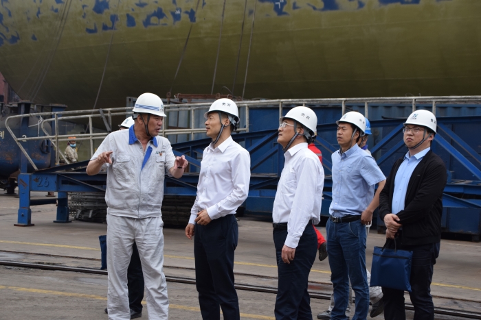 在隨后的座談交流中,鄔董事長向陸秘書長等重點介紹了公司的發(fā)展歷程及當前正在實施推進的重大項目,如數(shù)智化船廠的布局,以及為綠色低碳修船正在自主研發(fā)的設(shè)備設(shè)施等,同時,也談及企業(yè)發(fā)展中遇到的瓶頸問題希望得到相關(guān)的政策支持。