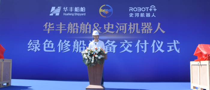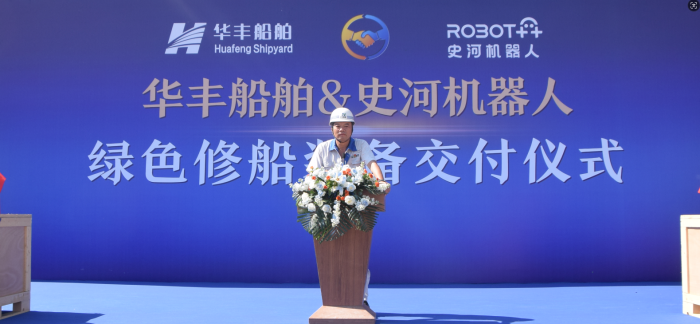 發(fā)布時間:2024-08-03 點擊量:32182024年8月3日上午,舟山華豐船舶與史河機器人公司綠色修船裝備交接儀式順利完成。史河機器人創(chuàng)始人&CEO許華旸、COO蒲瀟、工程部總經理劉彥,華豐船舶董事長兼總經理鄔志祥、副總經理舒開鋒等出席儀式,儀式由總經理助理周武佩主持。